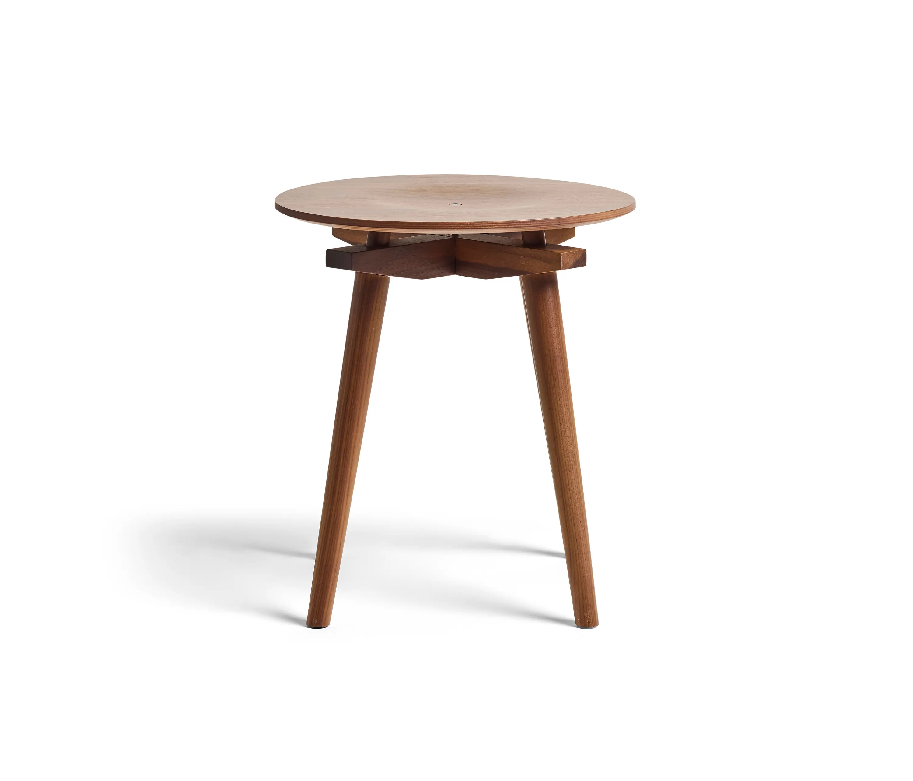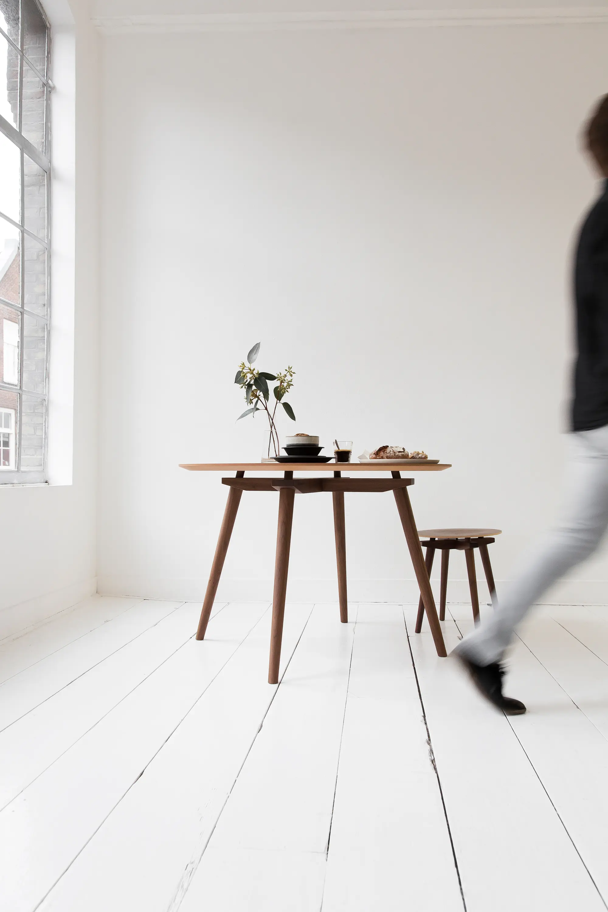 CC Stool 在设计语言与工艺结构上与 CC Table 一脉相承。非常适合偶尔坐下,也可作为置物的边几使用。CC Stool采用实木框架与弧形座面,重新诠释了木凳的精致形态。这件作品拥有鲜明的个性,即便独自陈列,也是一件引人注目的家具。