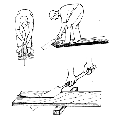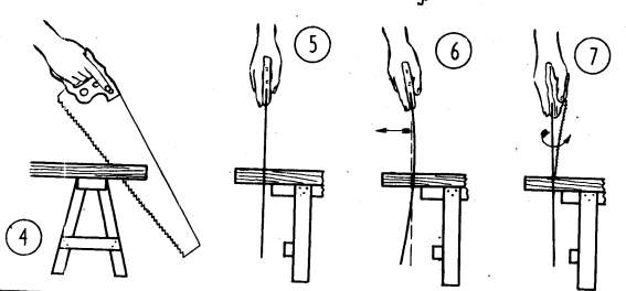 图注:②手板锯的握法。③锯齿落锯时的手势。④⑤手板锯正确的操作。⑥⑦手板锯不正确的操作。 图源:《上海家具木工详图》 徐锦华,徐培毅编著