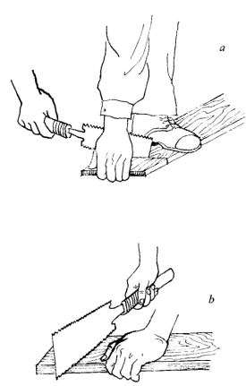 由于刀锯的锯齿向柄部倾斜,因此,拉锯时要重,推锯时要轻;推、拉刀锯的距离要尽锯板的长度(尽量用满锯片的整个行程)。引锯时要慢而轻,特别是锯割硬质木料,引锯要浅,一般应超过10个锯齿后再用力锯割。