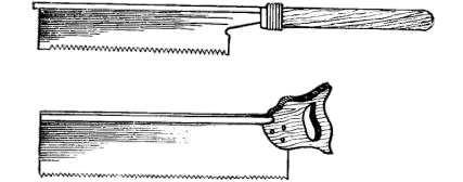 简称夹背锯,锯片较薄,利用钢夹背使其平直。锯片长度通常为200一400毫米,厚度在0.4毫米以下,由于锯齿细小和密集,故锯断的木料截面比较光滑,常用于锯割肩、拉角及槽口线,以及锯割贵重木材和碰尖的精细工件。