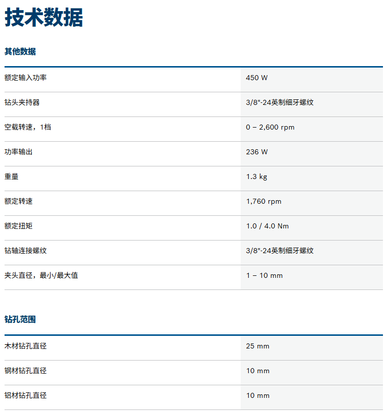 适用范围:通用木工作业;家具安装维修;金属加工钻孔作业;轻型建筑安装(电钻如有冲击功能)可在钻墙或轻质混凝土钻小孔安装膨胀螺栓。