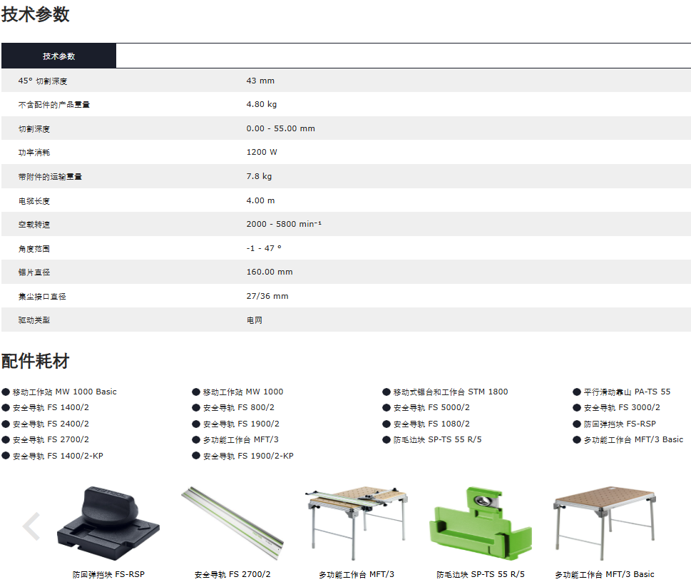 参考资料:费斯托官方资料便携式切入式圆锯TS 55 FEBQ-Plus