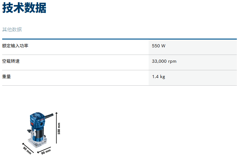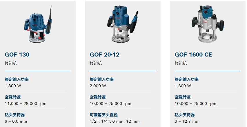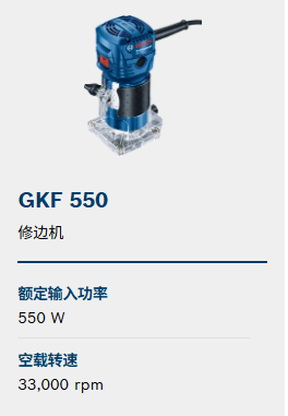 参考博世几款修边机数据:上面三款我们可以归类为电木铣(也就是2型木铣);下面GKF 550则归为1型木铣,也就是修边机。