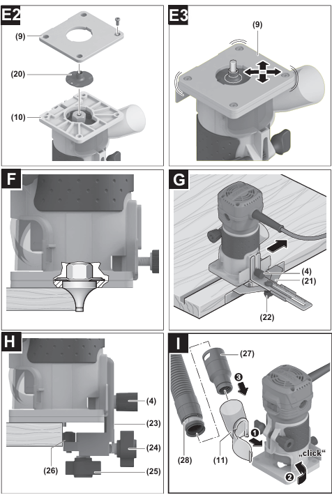 辅助靠山(靠尺):用于平行于边缘的开槽作业或仿形工作。