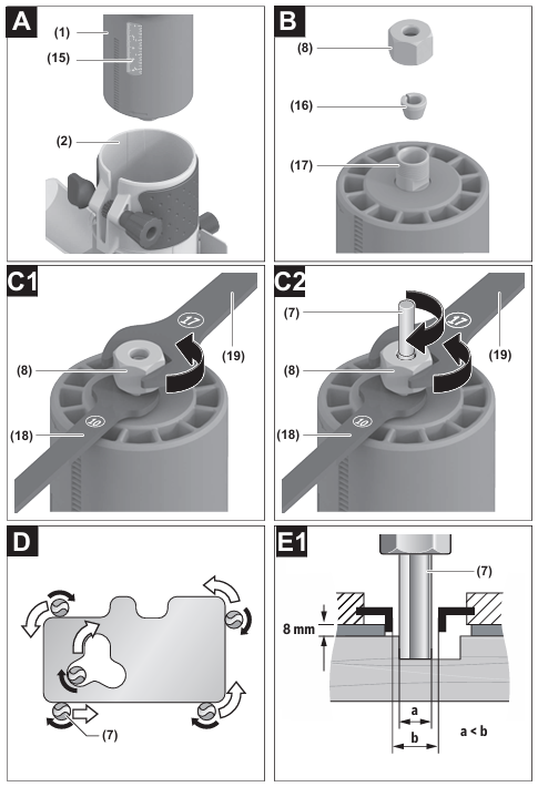 电木铣:夹头 1/2"(12.7 mm)或 8 mm,质量>2 kg,功率 1200–2500 W,归入“2 型木铣”
