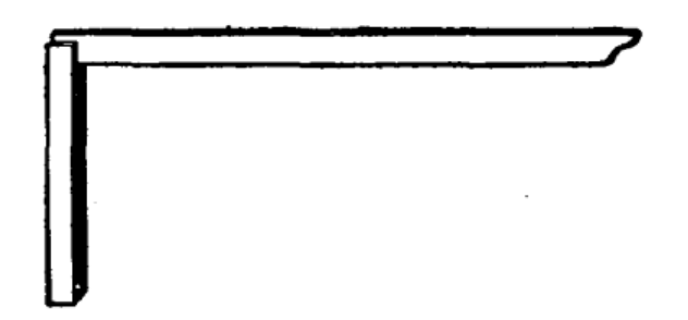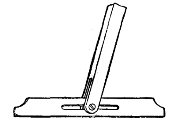 6.活络尺:活络尺是一种能任意调整角度的划线尺,可以自制,尺柄与尺翼的宽度和厚度可以参照直角尺,尺翼长度为300mm,中间开有槽,可以围绕木柄上的螺柱任意转动,当木柄上的螺柱旋紧时,即可将活络尺的角度固定住。
