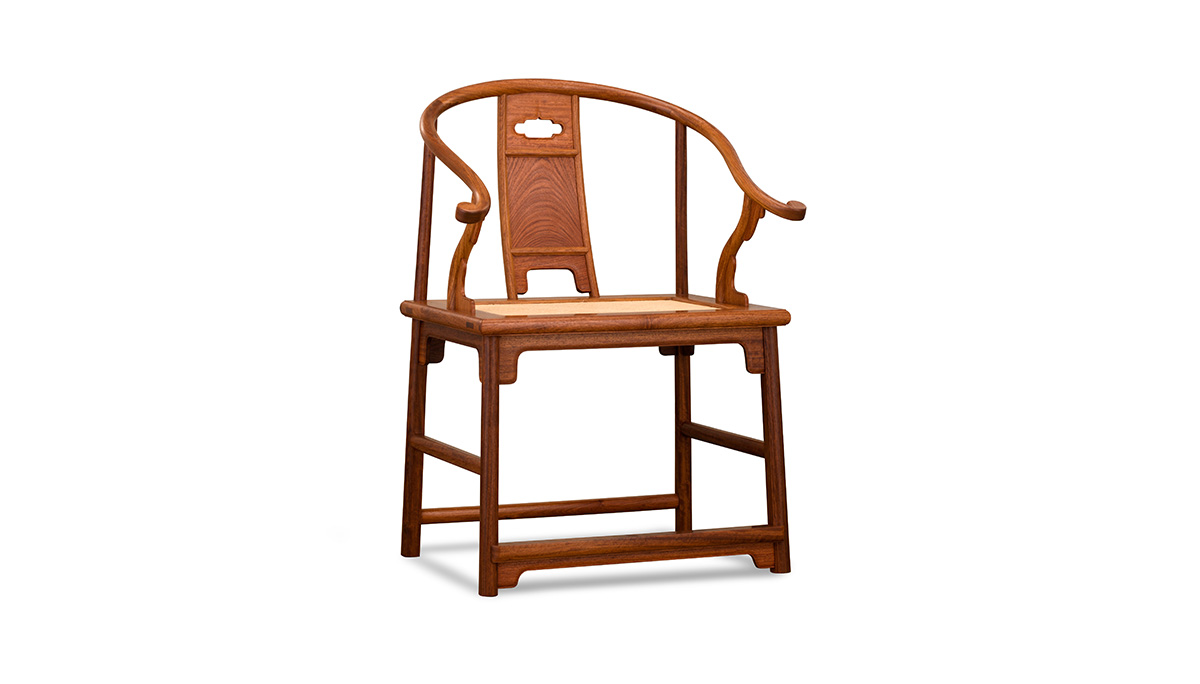 圈椅是一种形式特殊的传统扶手椅,此椅按人体结构做成半圆形,坐着很舒适。明式圈椅一般为光素,无雕饰。造型简洁秀美。圈椅的椅圈用多段木料拼接制成,按行规,有三段和五段两种。